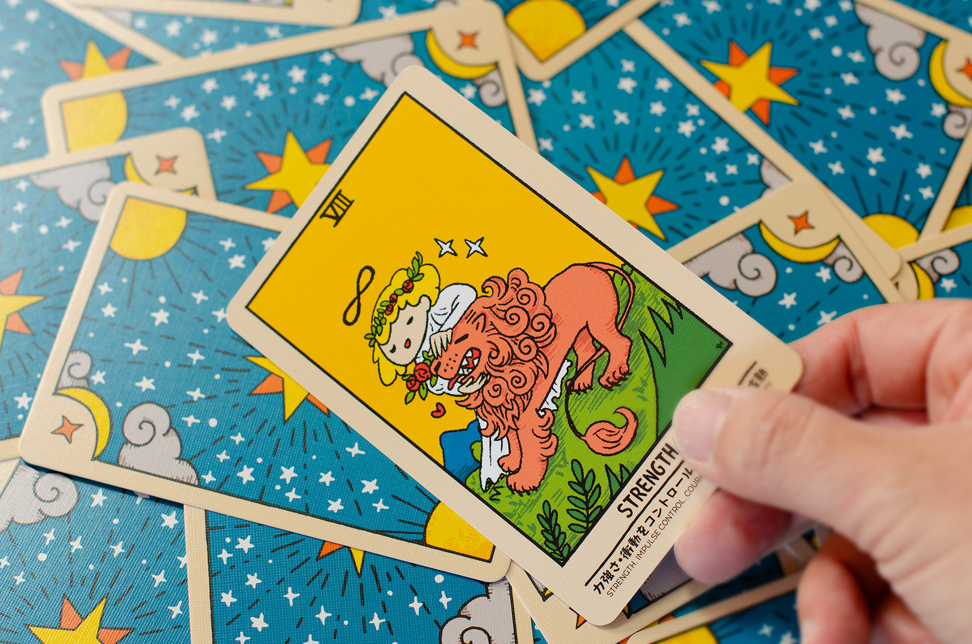 タロットカードのもつ深い意味合いはそのままに、はじめてでもゆるく楽しめるオリジナルタロットカードで、悩みを相談でき、占い師気分も味わえます。